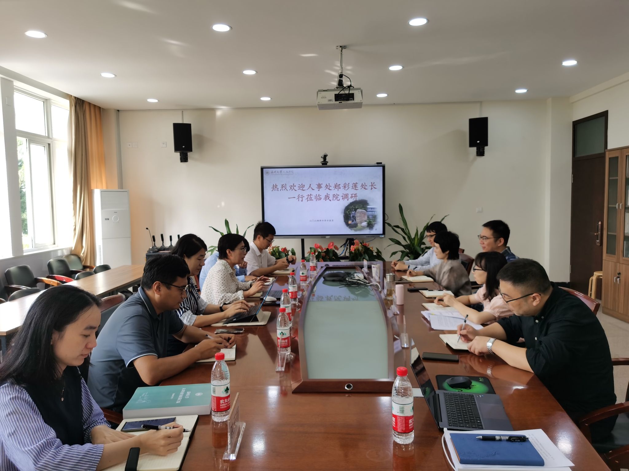 随后,陈源源副院长就学院未来师资队伍建设设想及高层次人才引育工作与人事处交流意见,并围绕学校人才引进政策、瓯江特聘教授聘任、专业技术职务评聘和教职工延迟退休等问题进行深入沟通,人事处分管副处长针对重要问题一一解答。