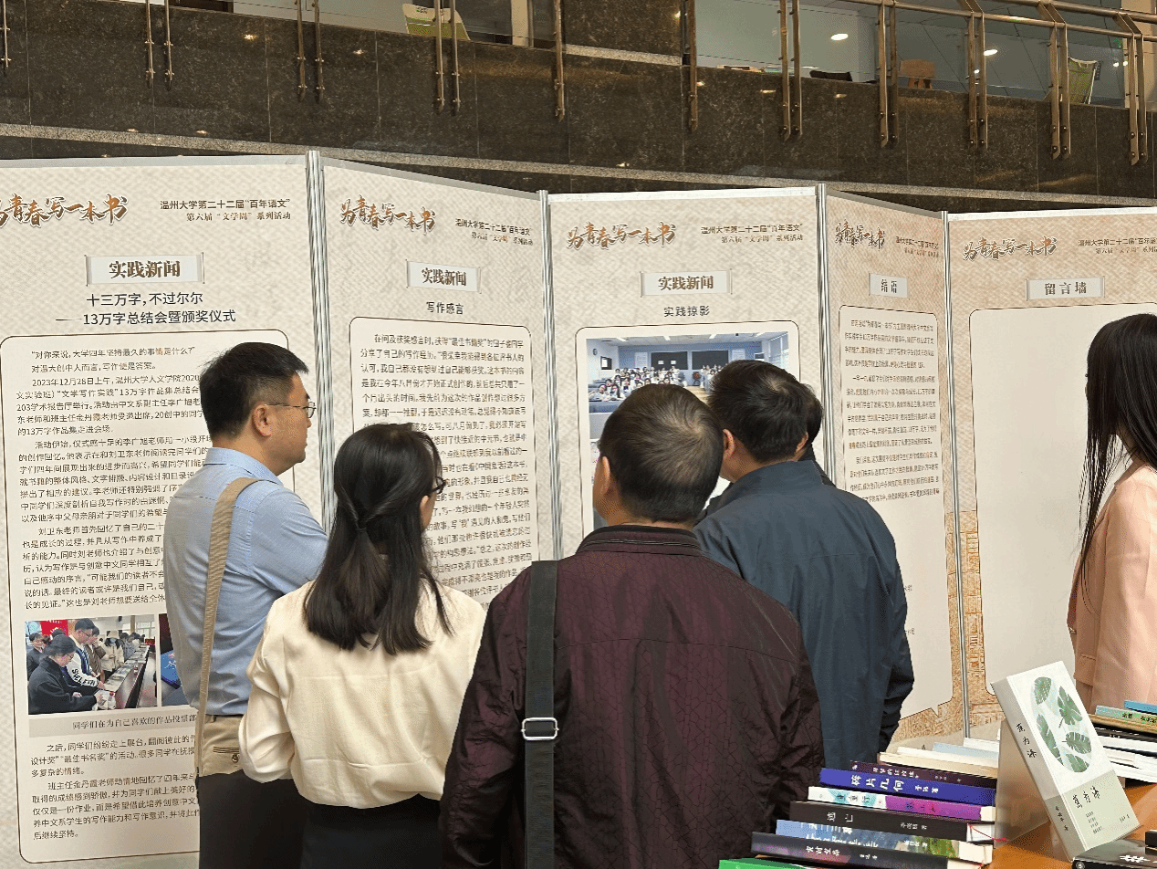 2024年11月11日8:30,温州大学第六届文学周暨中文系写作实践13万字作品展的开展仪式于温州大学育英图书馆隆重举行,吸引了众多领导、来宾以及师生们的热情参与。