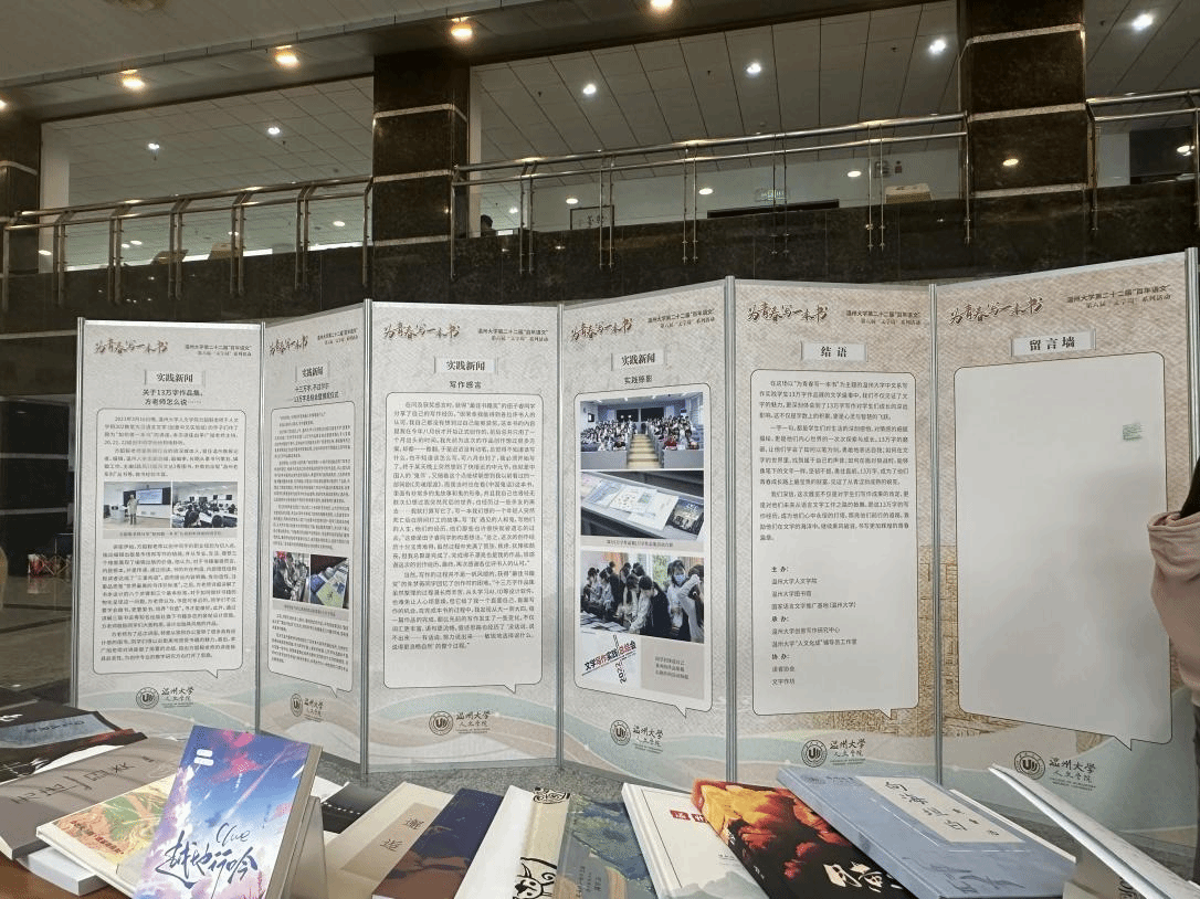 此次展出作为文学周系列活动的组成部分,有着独特的互动环节。陈源源副院长介绍道,师生朋友们不仅可以为自己“心目中的最佳书籍”投出宝贵的一票,也欢迎大家在留言板上写下观展感受。这些来自大家的建议,将为温州大学创意写作实践教学的后续建设提供动力。