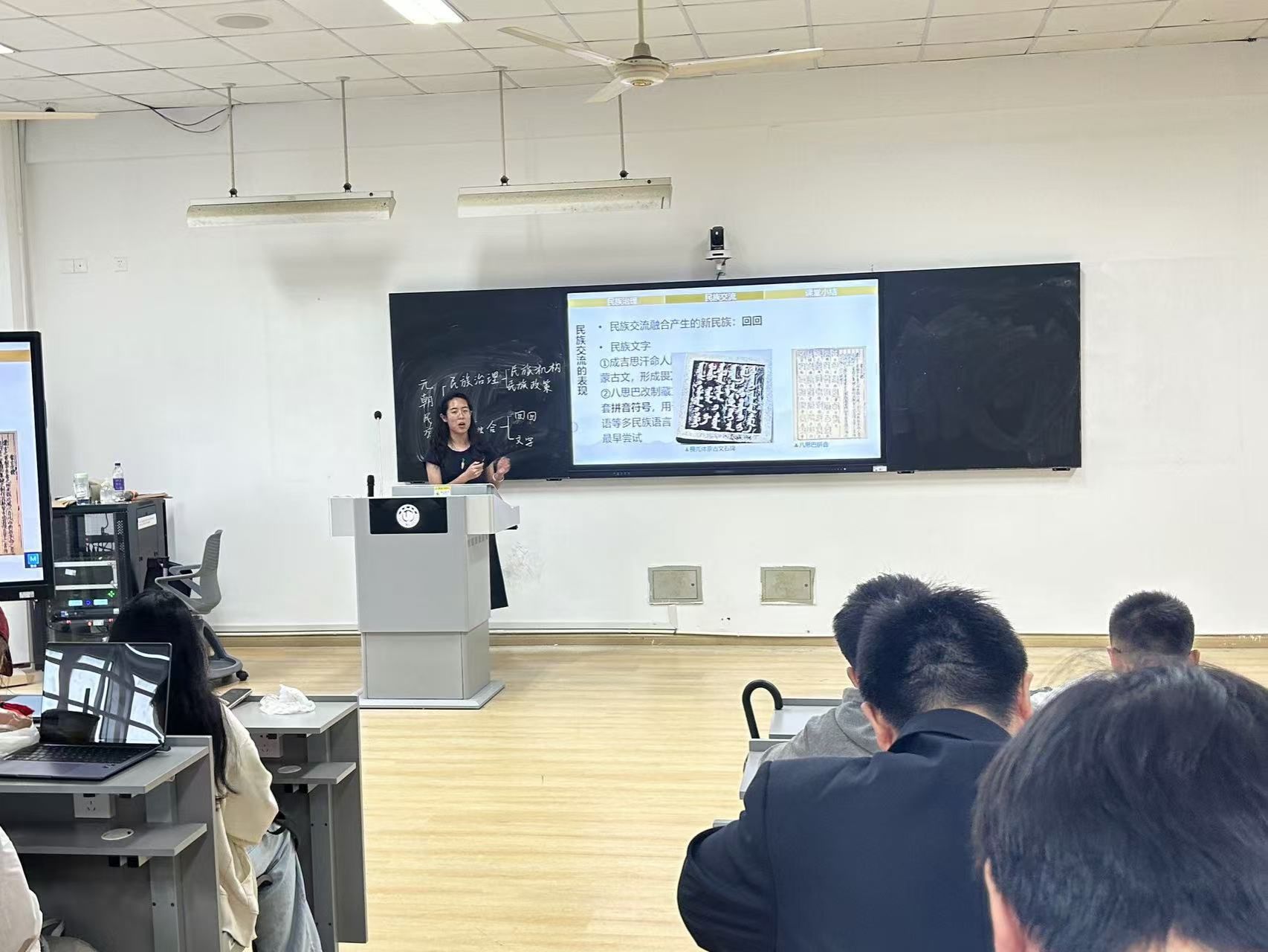 15日下午,同学间开展了见习小组模拟上课交流活动。两个班级共分成12个小组,每个小组进行8-10分钟的模拟上课。同学们积极准备,将所学的理论知识应用于课堂实践中,在讲台上大放异彩,充分展现出自身的教学潜力。同时,老师也从PPT制作、板书设计、史料讲解等授课细节方面为我们提出宝贵的建议。