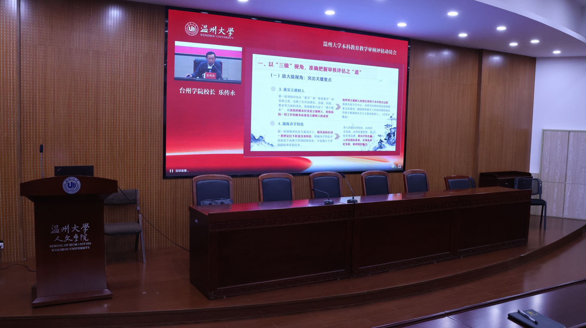 为确保2025年本科教育教学审核评估工作顺利进行,学校于2024年11月20日下午隆重召开了“温州大学新一轮教育教学审核评估启动大会”,会议采取主会场直播形式。球探体育 在北1-203设立分会场,全体教师参加了会议。