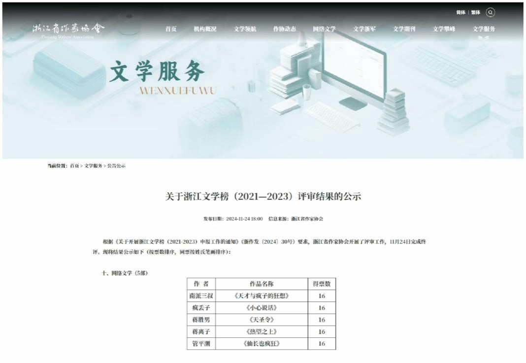 近日,浙江文学榜(2021—2023)最新发布,球探体育 研究员蒋胜男长篇网络历史小说《天圣令》上榜!