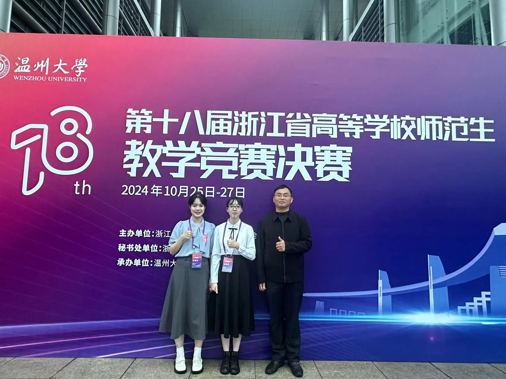 2024年10月25-27日,第十八届浙江省高等学校师范生教学竞赛决赛在温州大学进行。该赛事分为初赛和决赛两个阶段,来自浙江省28所高校的408名选手入围决赛。经过紧张的角逐,21历本的叶婷枫、郑依诺同学在学科众多、竞争极为激烈的综合一组荣获三等奖。