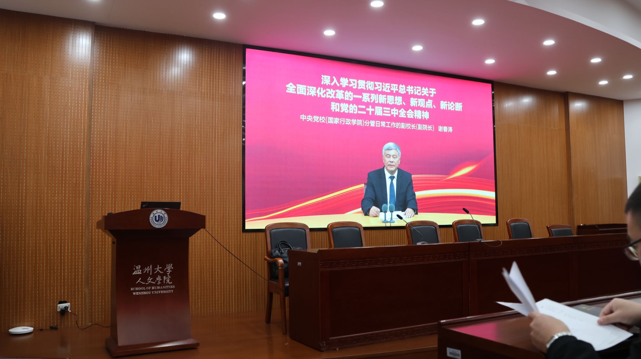 会议的最后环节,全体教职工共同观看了《深入学习贯彻习近平总书记关于全面深化改革的一系列新思想、新观点、新论断和党的二十届三中全会精神》视频。视频深入解读了全会精神,阐述了新时代下教育改革和发展的新方向和新要求。通过观看视频,教职工们对全会精神有了更加深刻的认识和理解,也更加坚定了为教育事业贡献力量的信心和决心。