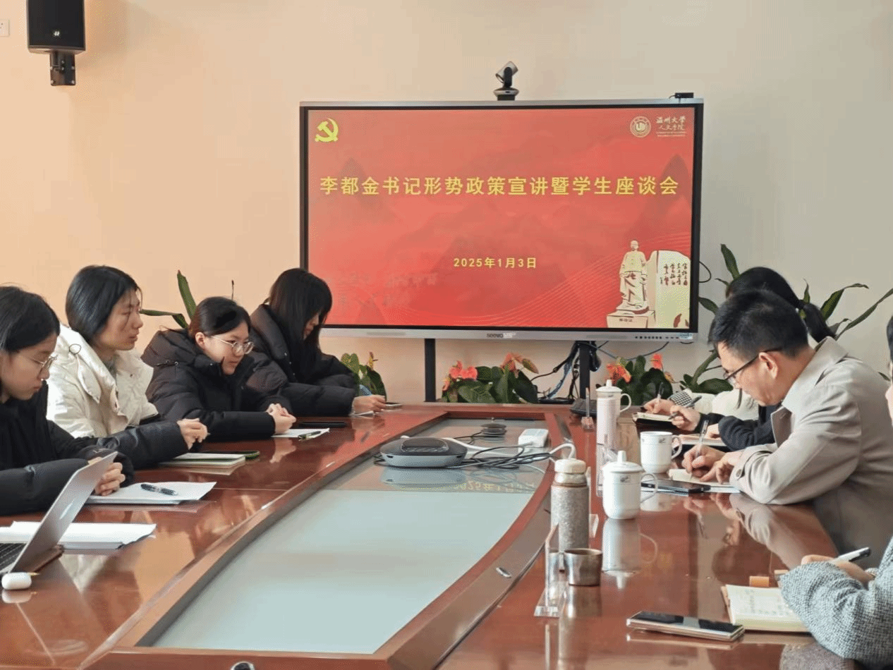 2025年1月3日上午,温州大学党委委员、纪委书记李都金莅临球探体育 ,与年轻学子开展了一场面对面的座谈,学院班子领导江秀景、陈源源、黄玮及学生干部代表参加,座谈会由黄玮主持。