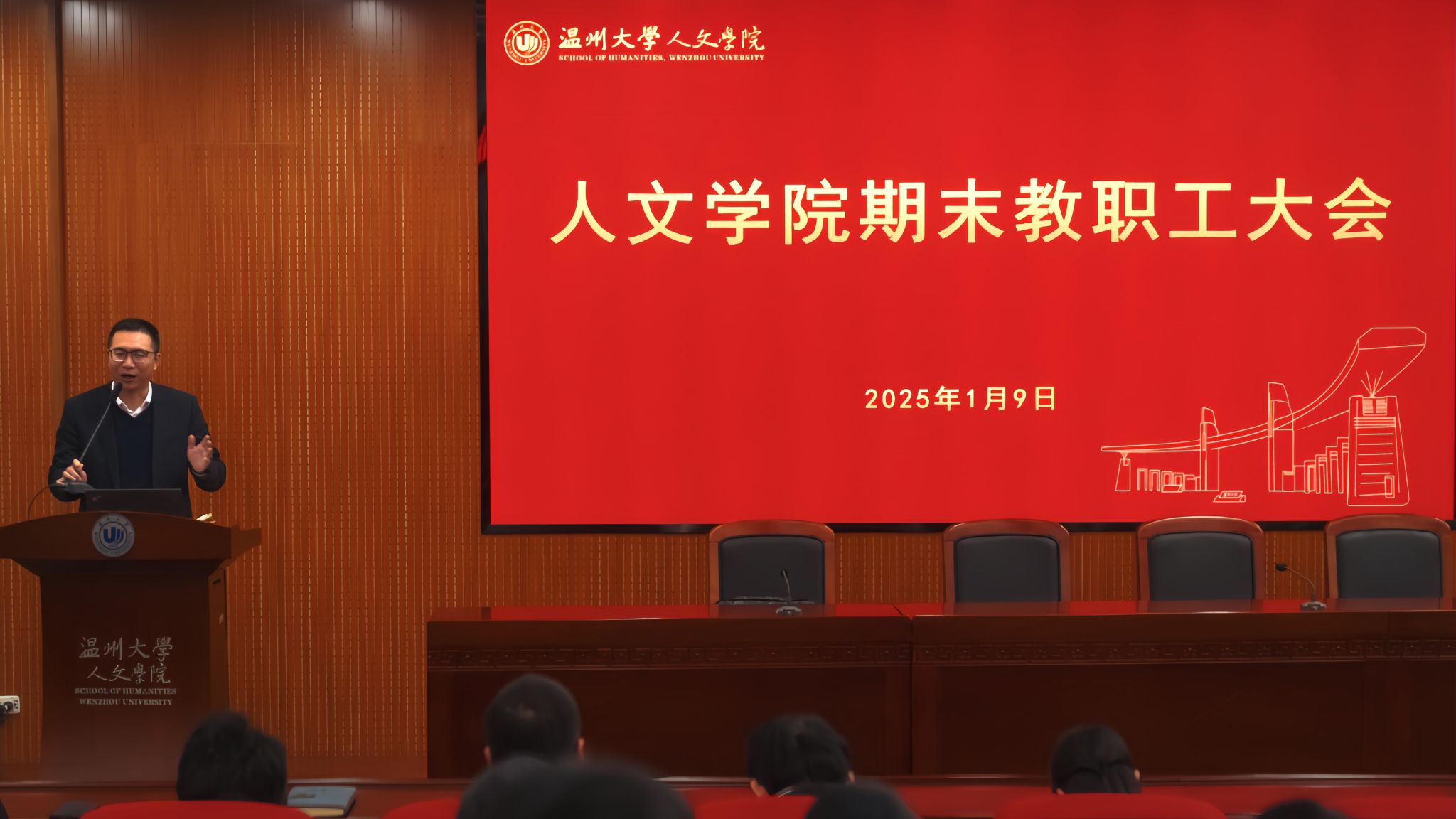 2025年1月9日,球探体育 在203会议室召开了期末教工大会。学院领导班子和全体教职工参加会议,会议由院党委书记江秀景同志主持。