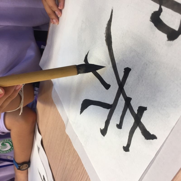 团委学生会的成员们以泰语向营员们致以诚挚问候,并高歌一曲,热烈欢迎远道而来的泰国友人,希望营员们能在此领略中国文化,促进孔子学院可持续发展。接下来,在团委学生会的组织下,营员们进行了丢手绢,你画我猜,挤气球,蒙眼作画等一系列中国传统游戏。通过游戏,营员们消除了初到异国的紧张拘束,中泰两国学生的心渐渐走近。随后,营员们学习毛笔字“中”“泰”,寓意两国友谊长青。开营仪式在热烈的掌声中圆满结束。仪式结束后,营员们热情地教导团委学生会的同学们以泰语告别,兴致勃勃地与大家合影留念。