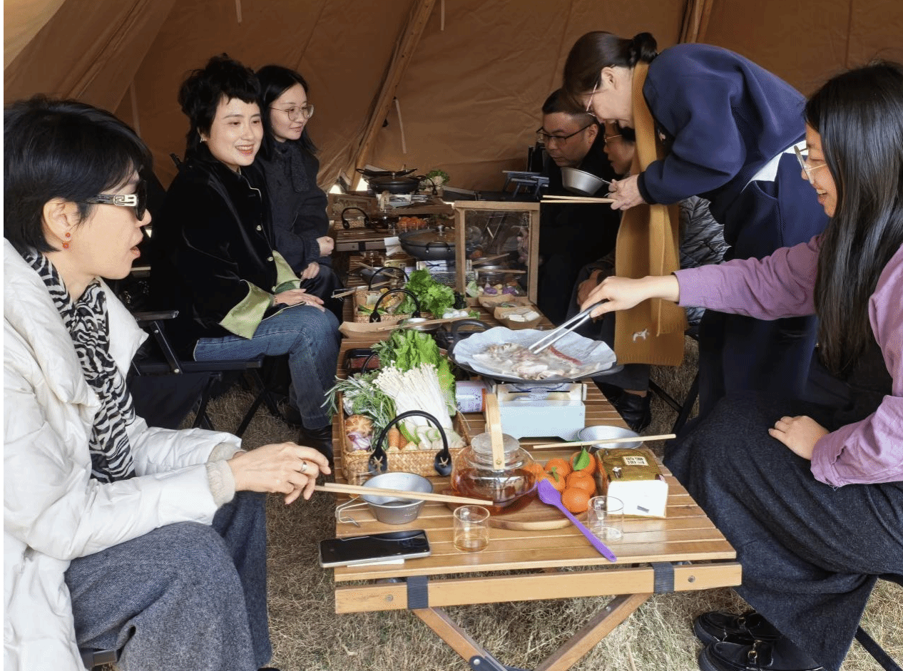 活动当天,阳光明媚,青灯市集内人声鼎沸,洋溢着浓厚的节日氛围。中午时分,女教职工们陆续抵达活动现场,大家享受着丰盛的美食,分享着工作与生活中的点滴趣事,欢声笑语不断,氛围温馨而融洽。午餐过后,活动进入了高潮部分——掐丝珐琅画餐盘制作。在专业老师的指导下,女教职工们纷纷拿起工具,在餐盘上勾勒线条,展现了女性们的艺术才华,体现了大家对美好生活的热爱与追求。