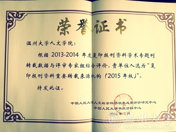 球探体育 入选“复印报刊资料重要转载来源机构(2015年版)”