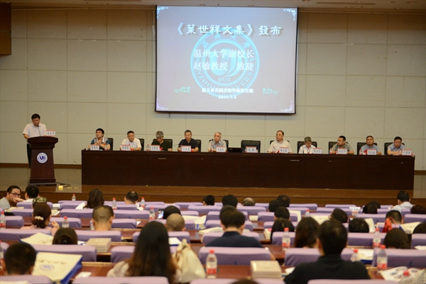 《文集》发布会由学院副院长夏雨禾教授主持。副校长赵敏教授对叶世祥教授率性真诚、热情活泼的动人品格,忠诚教育、倾心学术的满腔热情,严谨踏实、以学为乐的治学风范,给予了高度评价;他说“世祥自北京师范大学毕业后就没有离开过温州大学,没有离开过教育界,可以说是为温州大学的建设发展、为我国的高等教育事业鞠躬尽瘁、死而后已。”学院院长蔡贻象教授、《文集》主编马大康教授、《文集》责编宋旭华老师、龙泉市委宣传部常务副部长胡武海、胞弟叶世瑞等分别在会上作了讲话。会上还举行了赠书仪式,现场向叶世祥教授生前学习、工作过和联系密切的单位如龙泉中学、北京师范大学、北京大学、浙江大学、杭州师范大学、浙江传媒学院、浙江理工大学、浙江海洋学院、温州大学、温州市图书馆等赠送《文集》和追思集。