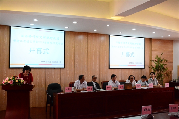 副院长夏雨禾致欢迎辞,中国修辞学会会长陈光磊教授、浙江省修辞研究会会长池昌海教授、浙江省语言学会副会长张先亮教授、上海语文学会会长胡范铸教授为本次会议致贺辞。