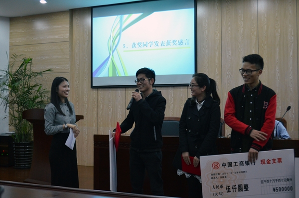 最后,好望角公司季晓飞总经理宣布了获奖名单,共有6名同学获得了5000元奖金,他们分别是李益碧、李雅婷、汪新东、赵莎莎、顾晨娴、陈强。拿着大张的支票,获奖者们都难以掩饰喜悦和感激之情,对广告学专业的老师、同学,对球探体育