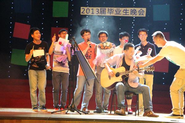 306寝室孩子们上台时,全场轰动,掌声雷鸣,四年的集体生活,宿管叔叔阿姨像亲人一样照看着我们的起居,如今正是作别的时候,一曲《滴答》充满了爱与温情!11本3班的学生独具匠心为大家演艺《在人文的日子》,学院的一幕幕重新回到我们身边,怀念着日日不曾离去的一草一木。第二篇章:“青春不打烊。”所以我们高声颂着海子的诗歌,长鼓咚咚响起来,所以跳起肚皮舞,在我的歌声里,告诉你但愿人长久。不知不觉,你们的光阴匆忙间走成了故事。篇章穿插的环节是“圆梦”,主持人现场抽学号,将写满毕业心愿的气球扎破与大家分享毕业生亲手写下的愿望卡,并且尽力帮助他们完成一次毕业小小的心愿。第三篇章:今天晚上,很好的月光,风吹麦浪,但却要在《张三的歌》后跟你说《再见》,再回首与你道一声,珍重!栖风文学社带来的话剧《今天晚上,很好的月光》真情演艺大学四年理想爱情与现实的矛盾,舞蹈,歌声,话剧,今天晚上,声声的祝福里充满了惜别的感伤,有眼泪,有交错的灯光,有笑容,有漫天飞舞的回忆,有即将毕业的你们,也有送别的我们,这一刻,请让时光放慢脚步。