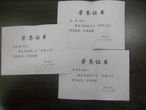 喜报:球探体育 林武、杨立忠、杨李洁、赵莎莎同学在温州大学“十佳百星”评选活动中喜获佳绩