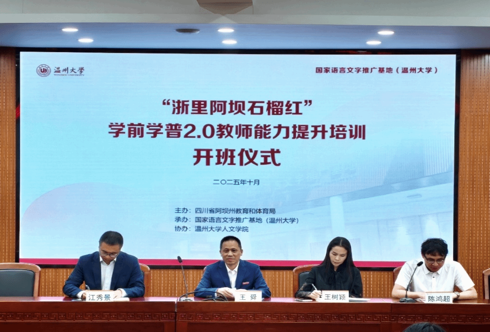 2025年10月21日至28日,由四川省阿坝州教育和体育局主办、国家语言文字推广基地(温州大学)承办、温州大学球探体育 协办的“浙里阿坝石榴红”学前学普2.0教师能力提升培训项目在温州大学成功举行,来自四川省阿坝州8个县(市)的100名藏、汉、羌、彝和土家族老师参加学习。