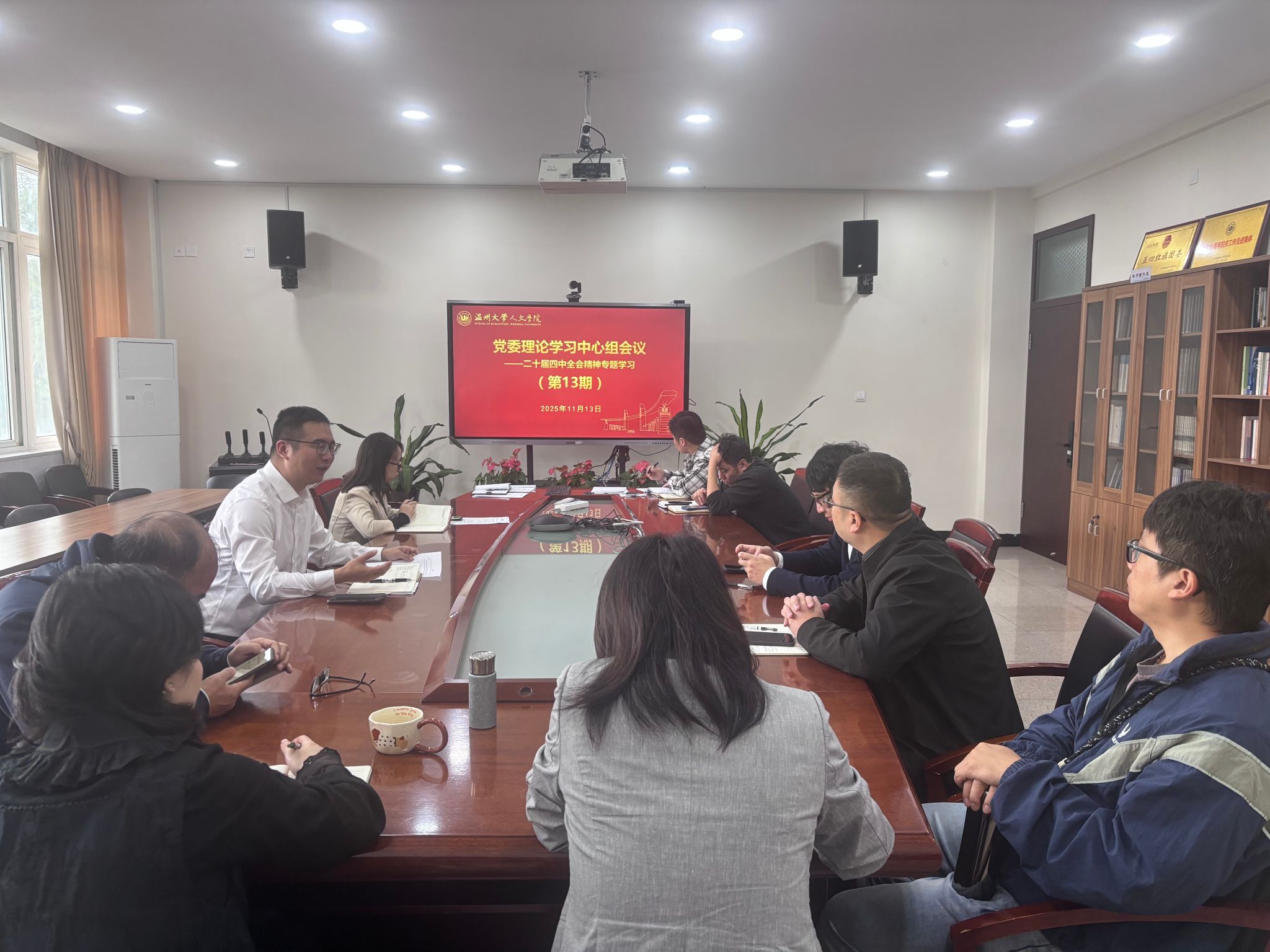 11月13日上午,球探体育 党委召开党委理论学习中心组学习会议,专题学习党的二十届四中全会精神,研究部署学院贯彻落实措施。院党委书记江秀景主持会议、传达领学并总结讲话,中心组成员张真、陈鸿超、鲍良兵作交流发言。