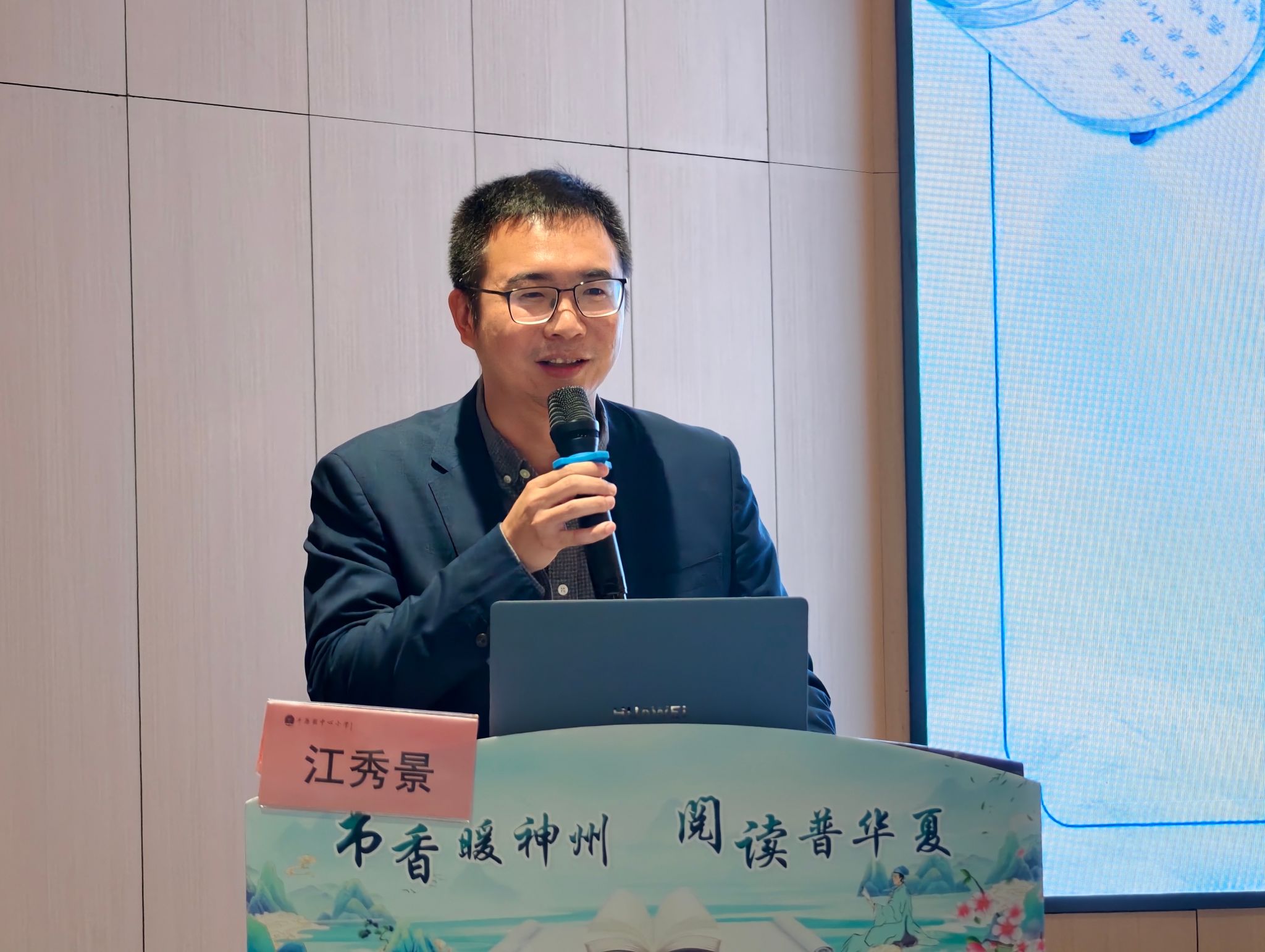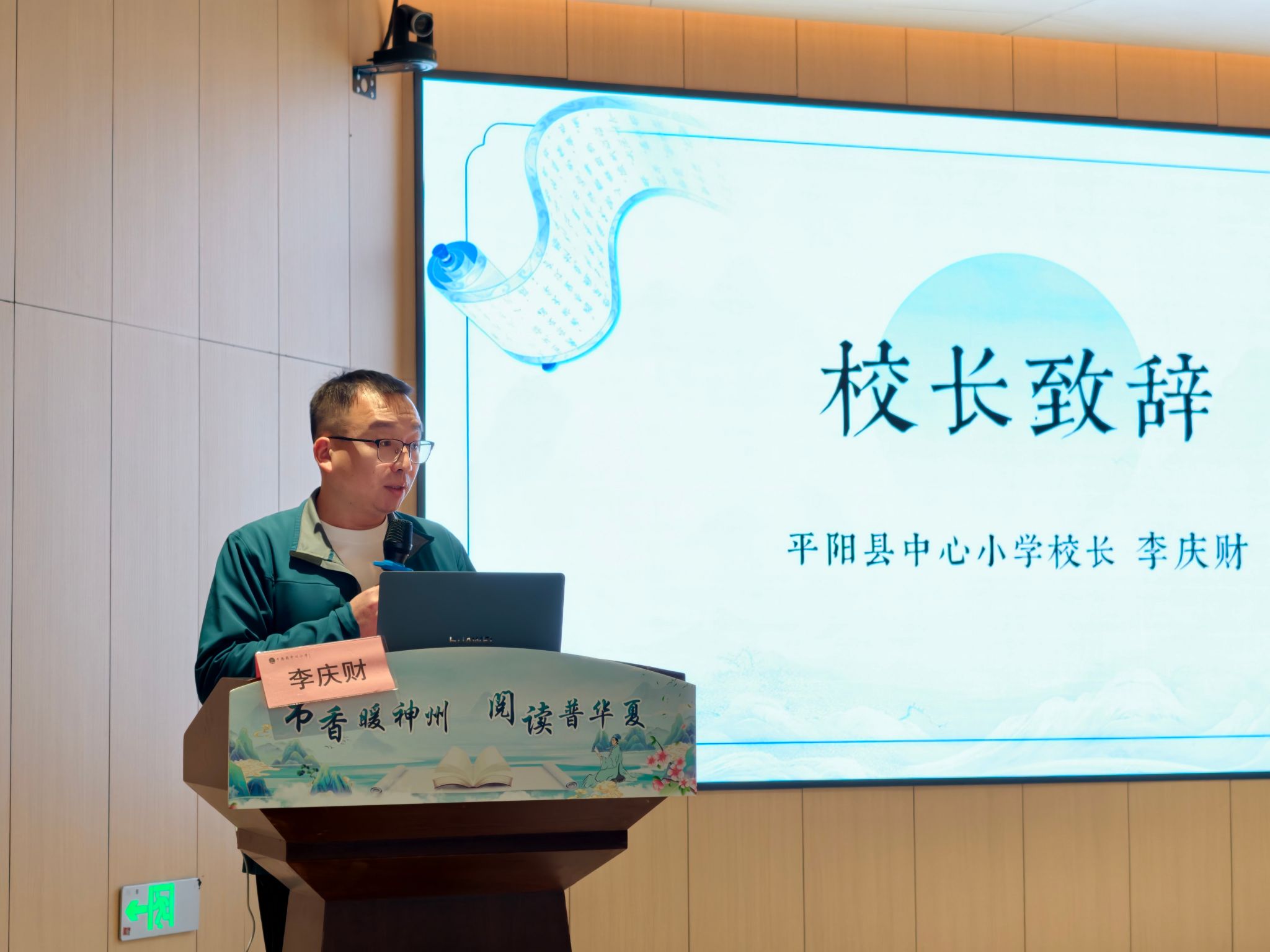 平阳县中心小学校长李庆财作开场致辞。他表示,平阳县小有120多年的办学历史,自1902年创办以来,始终以语言文字教育为立校之基、育人之本。工作站的成立是学校发展的重要机遇,未来将从深化内涵建设、强化文化传承、发挥辐射作用三方面发力,推动语言文字教育再上新台阶。