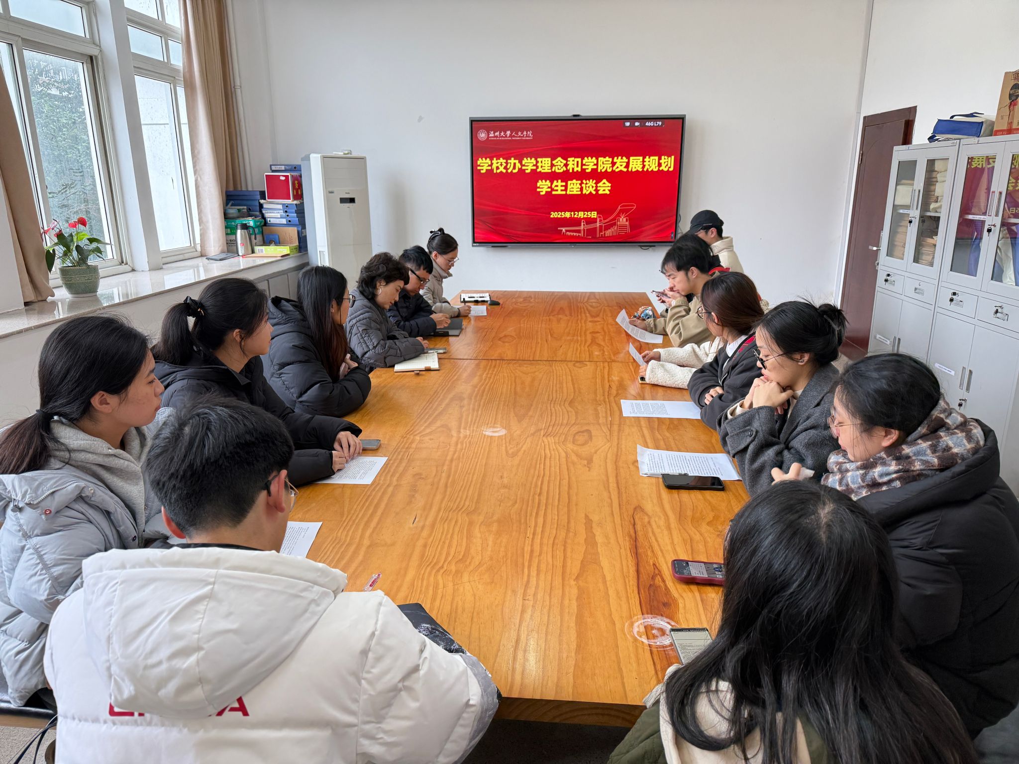 为深入贯彻以生为本的办学理念,凝聚师生发展共识,精准对接学生成长需求,12月25日上午9:00,球探体育 在214会议室召开“学校办学理念与学院发展规划学生座谈会”。学院党委副书记黄玮、副院长陈鸿超、学工办副主任刘炳林出席会议,来自本研各专业的学生代表齐聚一堂,为学校与学院“十五五”规划编制建言献策。