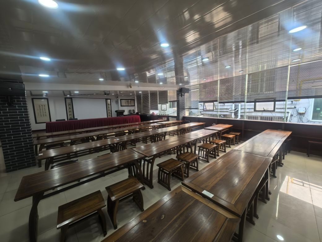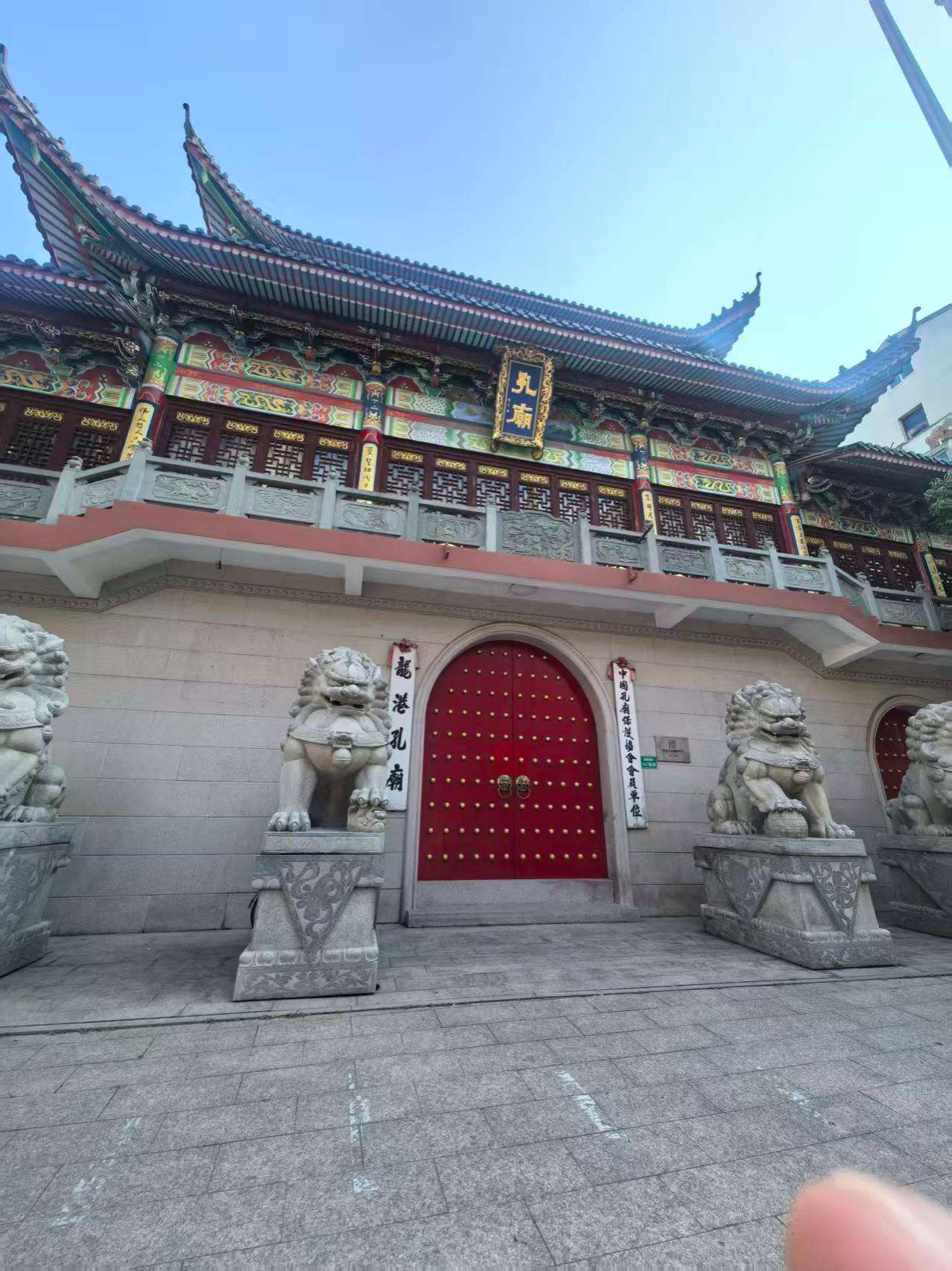 下午,调研组首先就龙港的几条主干路开展实地考察,随后走访七河社区、涂厂社区、新渡社区深入基层一线了解地名文化传承现状。在新都社区,调研组重点参观了龙港孔庙。该孔庙坐落于新渡村,村内70%以上村民为孔氏后裔,是浙南孔氏聚居核心区。其渊源可追溯至明代正德年间(1507年),孔子第61代嫡孙孔宏爱公自温州四甲迁居新渡,奠定孔氏聚居与家庙根基,至今已有500余年历史。孔庙为三进宫殿式建筑群,占地面积2682平方米。大殿两侧120米文化回廊陈列孔氏家训、儒家典故。2012年,龙港孔庙被中国孔庙保护协会吸纳为会员单位。这里集孔子学堂、文化礼堂、道德讲坛、孔子家风家训馆于一体,每年9月28日(孔子诞辰)举办祭孔大典,常年开设公益国学班、古琴班,展示孔子生平与孔氏迁徙史,是浙南地区儒学文化传承的重要场所。调研组在此地探寻孔氏家族迁徙与繁衍的历史印记,挖掘地名与宗族文化的关联。