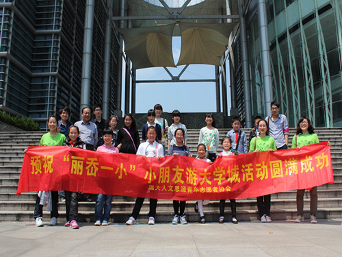2012年4月22日上午9点,我们迎来了"丽岙一小"的可爱小朋友们。温大人文思源青年志愿者们带领前来的小客人们参观游览了温大大学城。