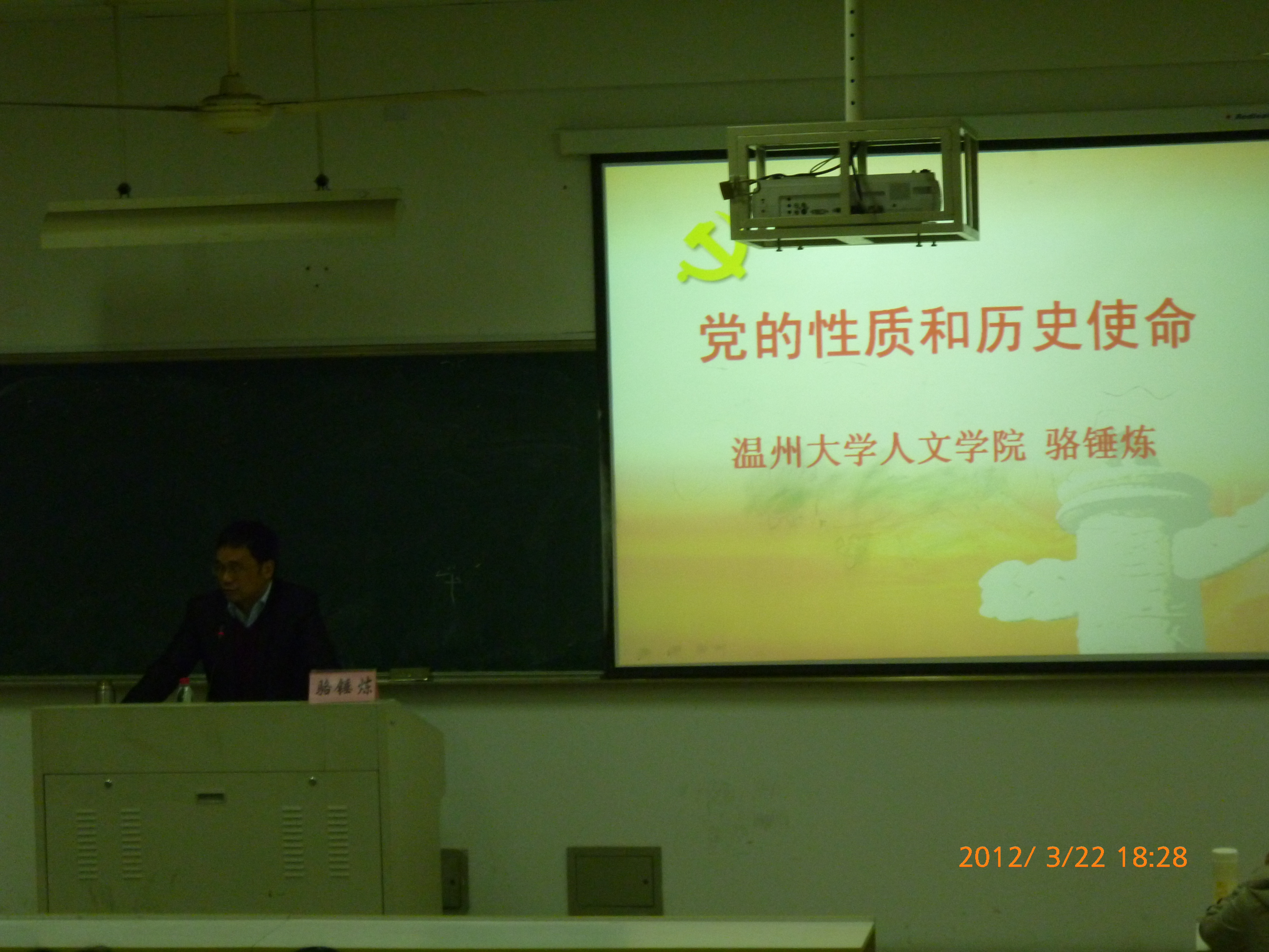 2012年3月22日晚18时30分,球探体育 第十五期党校培训第二课在1-301开课。球探体育 党总支副书记骆锤炼老师作为主讲人出席了本次党课。77名党校的学员和党员之家工作人员积极主动地前来聆听讲座。