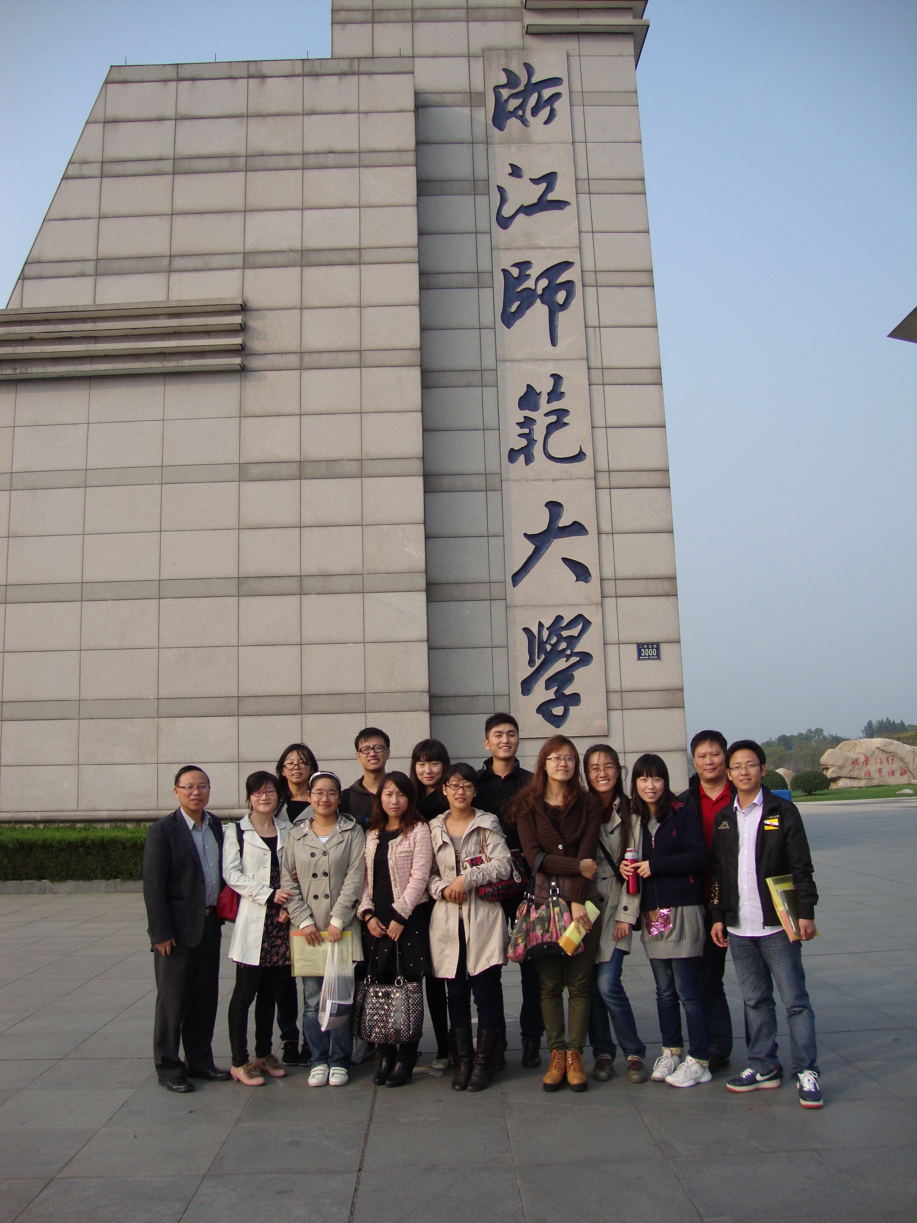 温州大学语文课程与教学论专业研究生一行15人在语文课程与教学论硕士点负责人彭小明教授、瓯江学院书记赖学军和林陈微老师的带领下于2011年11月13日赴浙江师范大学参加第二届全国“新语文教学”尖峰论坛。