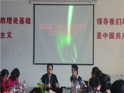 11月3日,温州第十四中学与温大三大媒体的文学沙龙在大学生活动中心B309隆重举行。温州第十四中学团委书记戴陈仪,奋飞文学社指导老师和全体社员以及温大青年,球探体育