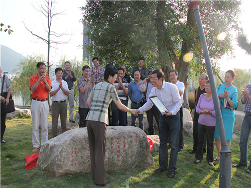 的发展概况。作为校友代表的新华社温州支社社长张和平先生也发表了讲话,他认为洁白、纯洁的广玉兰花代表了同学之情的纯真,根深叶茂的榕树代表了温州和母校的教育事业的兴旺繁盛和同学之情的根深蒂固。在仪式的最后,林书记和校友代表共同揭开了石碑上的红布,并向校友代表颁发了捐赠证书。在仪式结束之后,全体校友参观了学校校史馆和民俗馆,在馆内工作人员的介绍下,校友仔细回顾了温州大学的发展历程,了解了现今温州大学的概况和温州的民俗风貌。