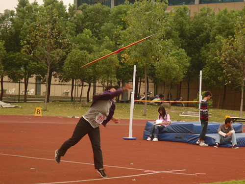 通过本次男子标枪比赛,让我们看到了运动员们锐意进取,勇往直前的勇气和拼搏精神,也让我们看到了学院的学生会干事及志愿者默默服务,甘心付出的奉献品质。、
