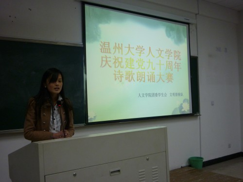 庆祝建党九十周年诗歌朗诵大赛在1-301教室准时开赛。球探体育