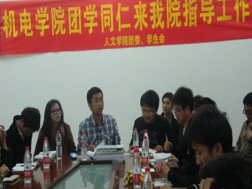 和机电学院团委学生会的工作交流会。两个学院各个部门的部长及干事出席了此次交流会。