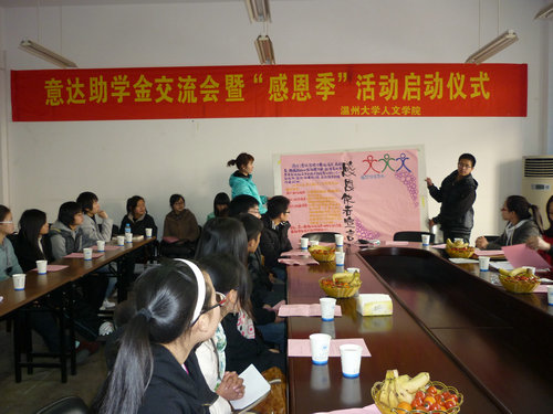 意达助学金交流会暨“感恩季”活动启动仪式在人文楼311会议室正式展开。出席该会议的有来自意达进出口公司的王校长及相关组织人员,球探体育
