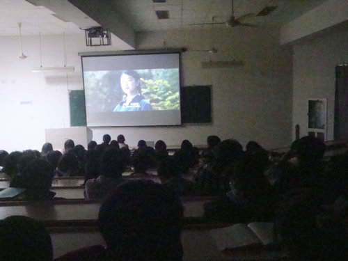 《山楂树之恋》作为本年度国产电影力作,在之前的“最受大学生欢迎影片投票”中拥有极高的人气。这部影片向大家讲述了一个文革期间纯净的、唯美而又感伤的爱情故事,真实再现了属于那个年代特有的浪漫。剧情的进展也在带动着台下同学们的情绪,同学们时而欢笑时而唏嘘。最后本次影片展播在同学们的意犹未尽中落下了帷幕。