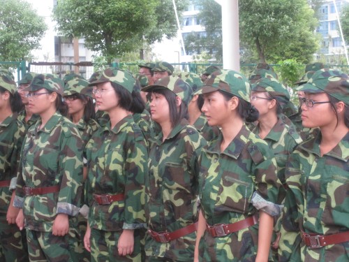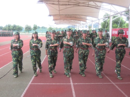 迎来了大学第一节必修课------军训。烈日炎炎,老天似乎收到了军训的日程,提前将雨水收走,这雨天留下的只是阳光的曝晒,使我们的身心收到严酷的挑战。然而,同学没有逃避,没有懈怠,发扬着自强不息,艰苦奋斗的军队精神,每个同学认真配合教官的要求,努力完成下达的任务、合作,在彼此之间建立了深厚的友谊,使班级的凝聚力大大提高。我们相信通过军训能提高我们的身体素质,强健我们的体魄,为以后的大学生活打好基础。