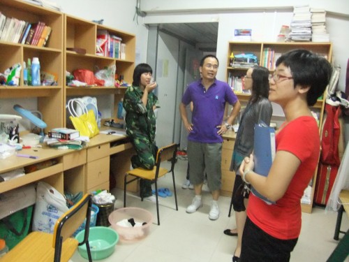党总支副书记骆锤炼老师、辅导员叶豪芳老师、10级中本一班班主任陈源源老师、小班主任俞玉颖同学等一行人走访了综合楼的各新生寝室。