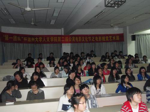 2010年4月11日18:30,由温州大学球探体育 团委、学生会心理部主办的“第一团队”杯温州大学球探体育 第二届公寓电影文化之电影视觉艺术展在人文楼203教室开展。