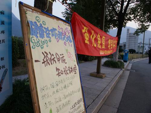 陈科长将本次讲座分为四个部分:健康的概念;当前主要的健康问题及影响健康的因素;倡导健康生活方式,共享和谐健康人生以及健康热点问题--甲型H1N1流感预防措施。陈科长深入浅出的分析讲解,使在场的同学对健康和免疫有了一个较清晰的认识。随堂问答环节也得到了台下同学的积极响应。最后部分,同学们向陈科长询问了一些生活中的健康问题,他均一一作答,让大家获益匪浅。