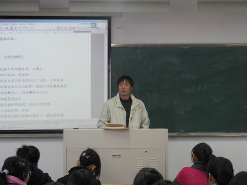 崔老师首先对本次诗歌培训作了简要的概括,他指出,诗歌需要我们用心去读,用心灵去品味。接着,崔勇老师便开始了诗歌的具体讲解。他从茨维塔耶娃的《致一百年以后的你》开始分析,诠释了诗人在诗歌的字里行间流露的“爱”。崔勇老师声情并茂的朗读使在座的同学们都渐渐地沉浸在诗歌美妙的意境之中。随后,崔老师又鉴赏了茨维塔耶娃的另一首诗歌--《尘世的特征》,告诉同学们要像对待工艺品一样对待写诗,要以一个匠人的身份去用心作诗。在两首茨维塔耶娃的诗歌之后,崔老师又转向了另一个诗人里尔克。作为20世纪对世界诗坛影响巨大的诗人里尔克,崔勇老师没有从宏观上加以介绍,而是从里尔克的几首小诗细致入微地展开,一句句妙语接连而至,给在座的同学们深深的情感震撼。最后,本次培训在崔勇老师深情地吟诵荷尔德林的《诗意的栖居》中圆满结束。