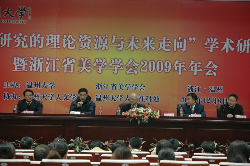 12月6日-12月7日,由温州大学、浙江省美学学会主办,温州大学球探体育 与温州大学人文社科处承办的“美学研究的理论资源与未来走向”学术研讨会暨浙江省美学学会2009年年会,在温州举行。来自中国社会科学院、山东大学、南京大学、浙江大学及省内等多所高校及科研机构的50余名专家学者参加了会议。国务院学位委员会学科评议组中文学科召集人、国家社会科学基金评审组成员曾繁仁教授,中国文艺理论学会副会长、浙江省美学学会会长徐岱教授分别作为嘉宾代表和浙江省美学学会代表在会上作了发言,会议由人文社科处副处长蔡贻象教授主持,副校长赵敏教授代表学校致辞,温州大学球探体育 院长丁治民教授代表学院致辞。