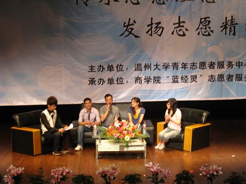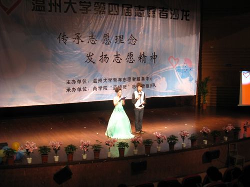 5月20日下午1:30,由温州大学青年志愿者服务中心主办,商学院“蓝经灵”志愿者服务队承办的温州大学第四届志愿者沙龙活动在温州大学南校区音乐厅拉开帷幕。