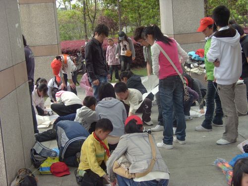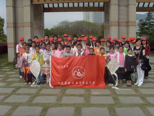 思源青年志愿者协会和08历本35名志愿者在学子广场与来自丽岙一小的22名学生进行了“走进风筝 放飞梦想”的志愿者活动。