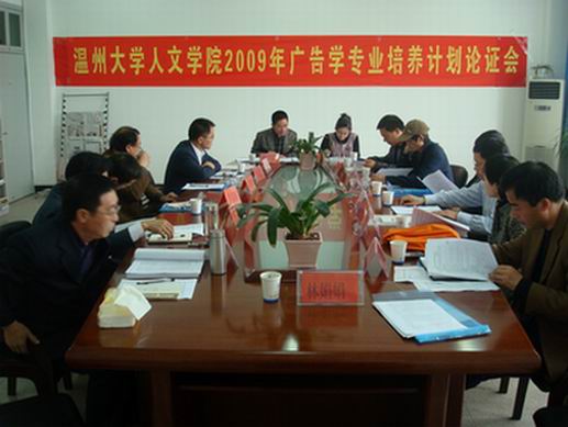 3月20日下午,球探体育 召开广告学专业培养方案专家论证会,专家组由浙江大学广告学系主任胡晓云教授、浙江工业大学广告系主任张雷教授、宁波大学传播与艺术学院原院长陈月明教授,温州市高速广告有限公司董事长、广告协会副会长李玉信,温州市长运广告公司董事长、广告协会副会长郑元林、美术学院副院长舒湘鄂教授、商学院李忠宽博士组成。