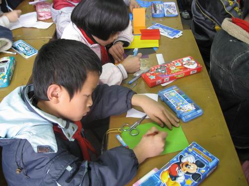 2009年3月11 日下午,温州大学人文思源的16名志愿者来到了益民小学,组织那里的孩子进行了一场书签制作比赛。