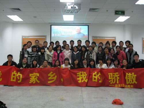 2008年12月5日,温州大学球探体育 08历本举行了以“我的家乡,我的骄傲——改革开放30周年”为主题的团日活动。学院辅导员曾蓓蕾老师、蔡晓武老师、麻法全老师、学生会成员及大一各班班长和团支书一同前来观摩了此次活动。