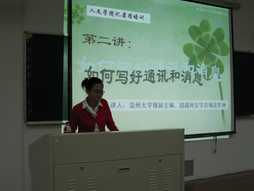 1-101教室举行。本次讲座由《温州大学报》副主编、超越网文字总编沈军洲主讲。
