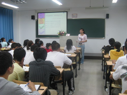 最后,曾蓓蕾老师以"平凡造就伟大,细节决定人生"为题,从学生会干部的自身定位、待人处事的原则、生活作风、超越自我的勇气等几个方面结合具体事例进行了精彩的阐释,使同学们明白作为一名学生会干部要在学习、生活、工作中对自己严格要求,逐步克服自身的弱点,使自己得到更为全面的发展。