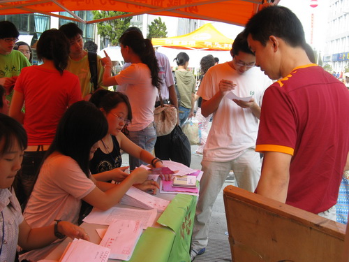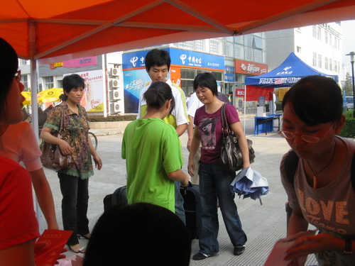 的志愿者们一批一批有序热情地为他们提供最直接的帮助:报到登记、提箱拎袋、引领寝室、解答疑问等。在C区的各个角落都有志愿者辛苦而快乐的身影。虽然太阳有些猛烈,但这丝毫没有减退他们乐于奉献的精神。有了志愿者的带领,新生更容易地找到了各自的寝室;有了志愿者的介绍,新生更快地熟悉了新的环境;有了志愿者的帮助,新生更深刻地体会到了温大人的热情,同时也体会到了球探体育