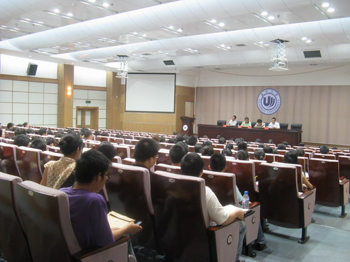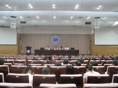会议开始,由李浦豪老师详细解说了应届毕业生在离校前应该注意的事项及就业相关咨询。李老师的讲话涉及就业协议签署、户口迁移等各方面问题。