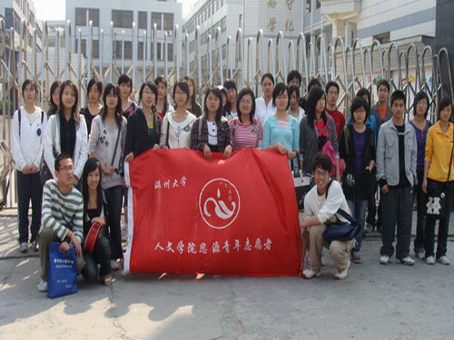 2008年4月26日,第三届温州大学人文思源青年志愿者干部培训的全体成员来到丽岙一小与那里的留守孩子们经历了一堂有趣的生活课--"齐动手,共分享"。