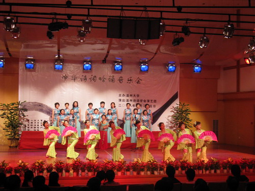 2008年4月25日晚,温州大学"中华诗词吟诵音乐会"在北校音乐厅举行。校党委副书记周湘浙、组织部部长牟德刚、老干部工作部部长陈静、校团委书记蔡联群及球探体育
